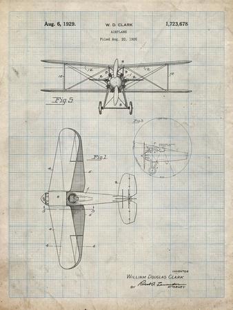 PP68-Antique Grid Parchment Staggered Biplane Aircraft Patent Poster