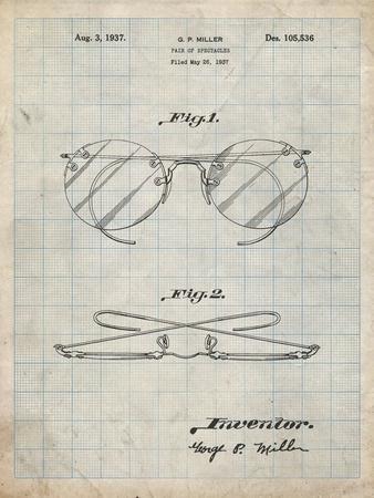 PP803-Antique Grid Parchment Eyeglasses Spectacles Patent Art
