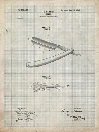 PP1178-Antique Grid Parchment Straight Razor Patent Poster