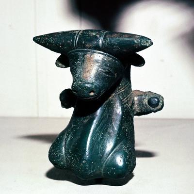 Bronze bull's head from a cauldron, Rynkeby Bog, Denmark, c4th century BC. Artist: Unknown