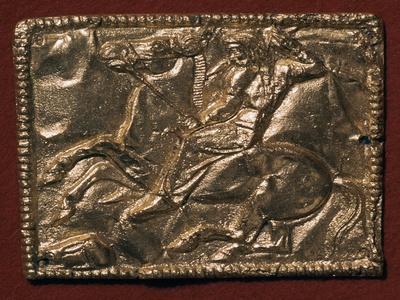 Gold plaque showing a Scythian hunter, 5th century BC Artist: Unknown