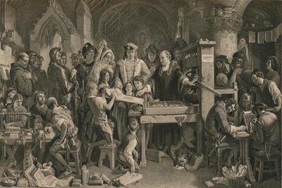 Caxton showing the first specimen of his printing to King Edward IV at Westminster, c1477