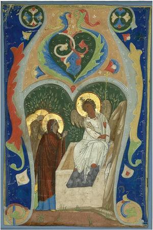Three Maries and the Fiery Angel at the Tomb. Initial, ca 1310