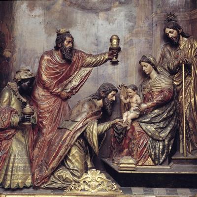 'Adoration of the Magi', sculptural group in the side altar of the church of San Felipe Neri in