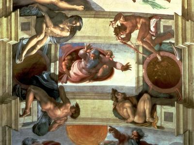 Sistine Chapel Ceiling: God Separating the Land from the Sea, with Four Ignudi, 1510