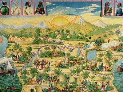 The Conquest of Africa board game based on the travels of Sir Henry Morton Stanley and David Livingstone colour engraving French School th century Private Collection Archives Charmet The Bridgeman Art Library