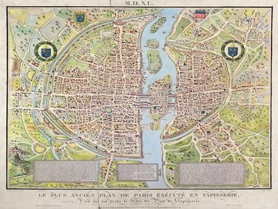 Plan de La Tapisserie, Map of Paris, Originally a Tapestry Made in circa 1570, 1818