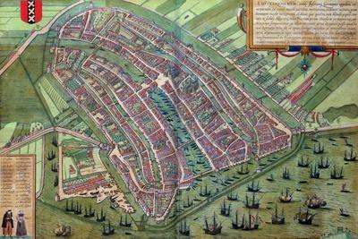 Map of Amsterdam from Civitates Orbis Terrarum by Georg Braun and Frans Hogenburg c coloured engraving Hoefnagel Joris after Private Collection The Stapleton Collection The Bridgeman Art Library