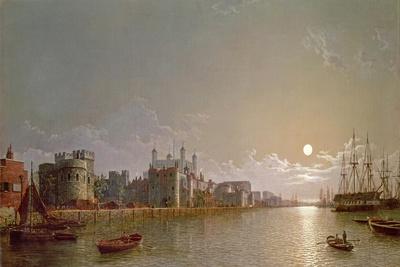 The Thames by Moonlight with Traitors Gate and the Tower of London Pether Henry fl Private Collection The Bridgeman Art Library