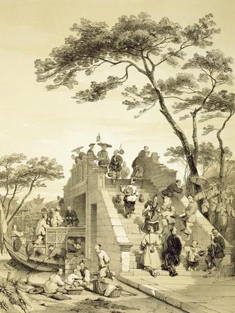 Bridge near Canton plate from Sketches of China engraved by Eugene Ciceri tinted litho Borget Auguste after Private Collection The Stapleton Collection The Bridgeman Art Library