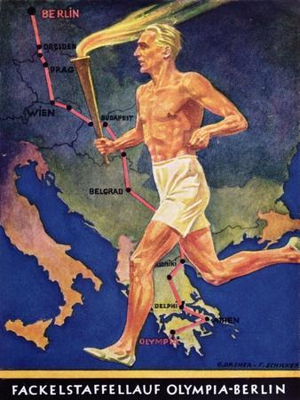 Torch Bearer at the Berlin Olympic Games colour litho German School th century Private Collection Archives Charmet The Bridgeman Art Library