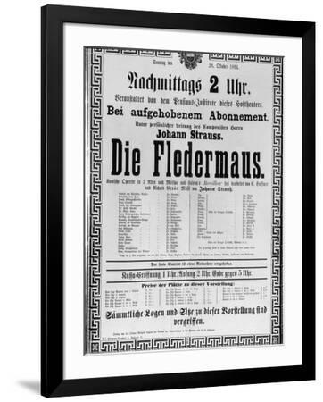 Poster Advertising 'Die Fledermaus' by Johann Strauss the Younger, for a Performance