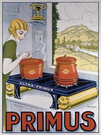 Poster advertising the Primus hob printed by Dampenon Elarue colour litho French School th century Private Collection The Bridgeman Art Library