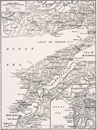 Detailed Map of Gallipoli Peninsula and the Dardanelles Turkey, 1915, from 'The War Illustrated…