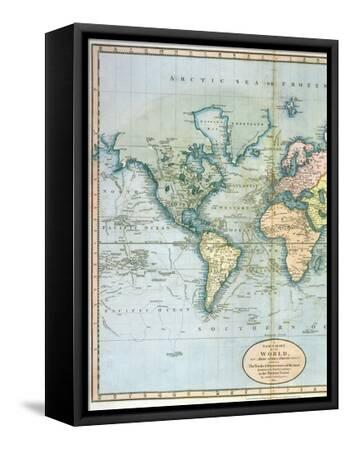 Map of the World: Western Half of "A New Chart of the World, on Mercator's Projection, Exhibiting… Framed Canvas Art
