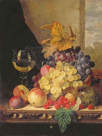 A Still Life with Grapes, Raspberries and a Glass of Wine