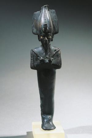 Mummiform Figure of Osiris with Arms Crossed Wearing Atef Crown, Bronze Statue