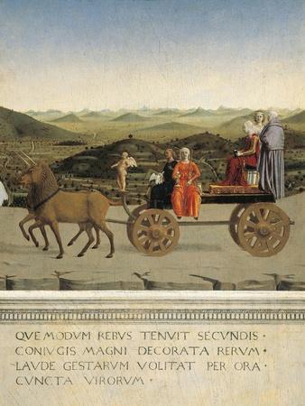 Diptych of Dukes of Urbino: Triumph of Duchess of Urbino, Back Side of Portrait of Battista Sforza