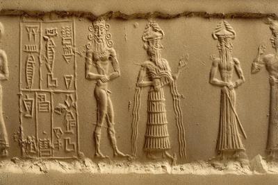 Clay Impression of a Cylinder Seal Depicting Adoration Scene from Nippur, Iraq Giclee Wall Art