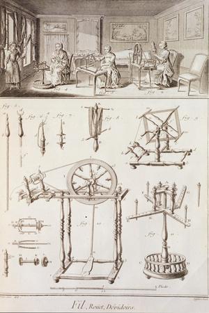 Plate Showing Women Spinning Thread and Spinning Wheels and Reels