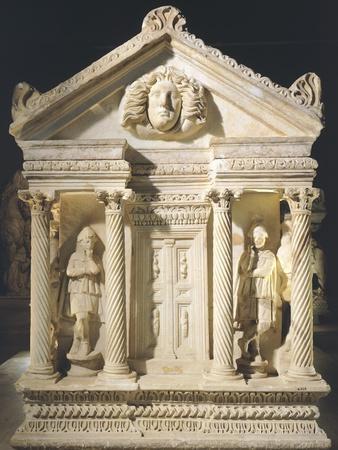 Relief of a Sarcophagus Depicting Two Guards Guarding the Door of the Tomb