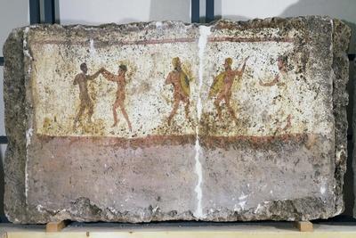 Fragment of fresco depicting boxers and gladiators from Tomb III known as Tomb of Boxers and Gladiators Necropolis of AndriuoloLaghetto Paestum Italy Italic civilization thth century BC Museo Archeologico Nazionale Paestum Italy De Agostini Picture Library A de Gregorio Bridgeman Images