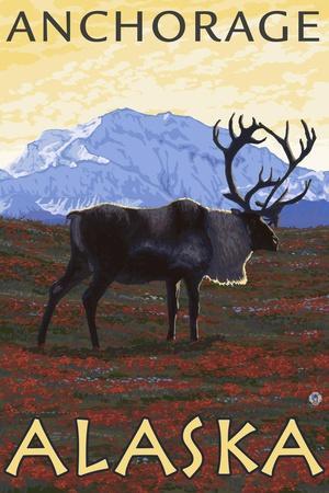 Caribou Scene, Anchorage, Alaska