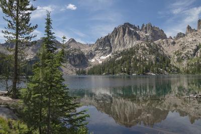 Monte Verita Peak mirrored in still waters of Baron Lake, Sawtooth Mountains Wilderness, Idaho.