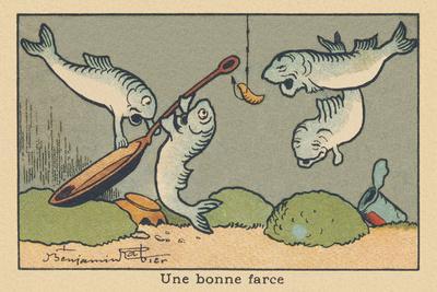 Two Fish Hook a Pan to the Hook in the Fisherman's Line.” A Good Joke” ,1936 (Illustration)
