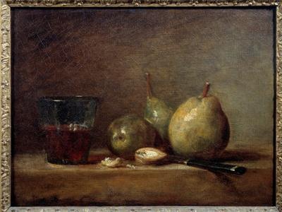 Pears, Nuts and Glass of Wine. Still Life. Painting by Jean Baptiste Simeon Chardin (1699-1779), 18
