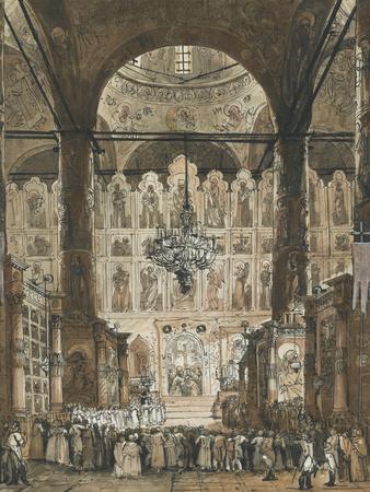 Mass at the Cathedral of the Dormition in the Moscow Kremlin, C.1850 (Gouache)
