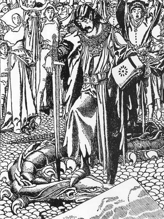 Lancelot Slays Corbin's Snake, Illustration from 'The Story of Sir Lancelot and His Companions', 19
