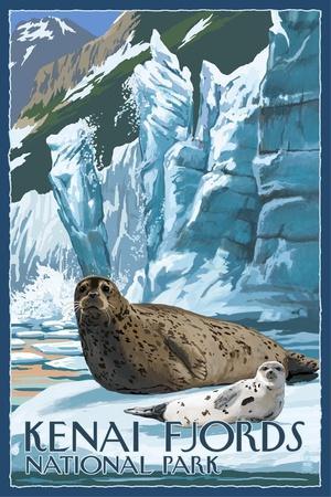 Kenai Fjords National Park, Alaska - Seals & Ice Shelf - Lantern Press Artwork