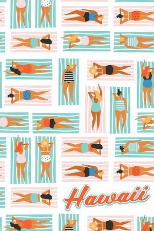 Hawaii - Aerial Beach Scene - Ladies on Towels - Lantern Press Artwork