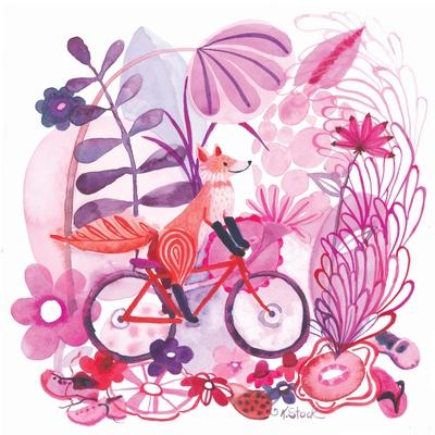 A beautiful portrait of a frisky fox riding through a pink forest. Enjoy Kerstin Stock’s illustrated world in this abstract watercolor painting, “Foxy Wonderland” Nature lovers will enjoy this feisty fox, a unique watercolor & mixed media painting, this art piece features bright happy colors of pinks red and magenta, and layers of watercolor wash paint. Perfect for a kids nursery or child's room this magical woodland creature will awe your child.