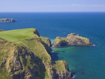 Carrick-A-Rede Rope Bridge to Carrick Island, Larrybane Bay, County Antrim, Northern Ireland