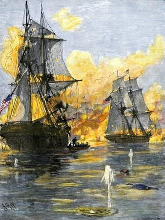 War of 1812: American Fleet of Officer Oliver Hazard Perry (1785-1819) in His Victory over the Engl