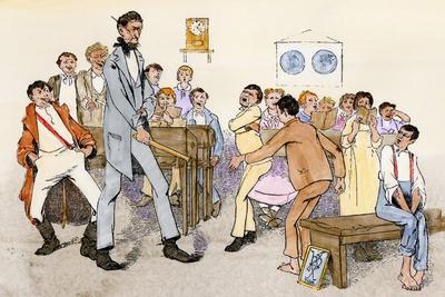 A Teacher Correcting a Student with a Rule in His Classroom. Body Punishment 19Th Century. Illustra