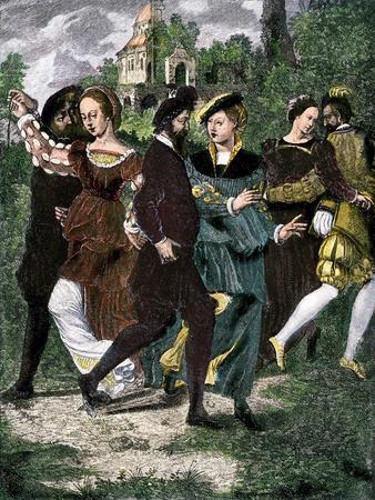 Gallant Scenes of the Renaissance. Couples Dancing in England in the 16Th Century. 19Th Century Eng