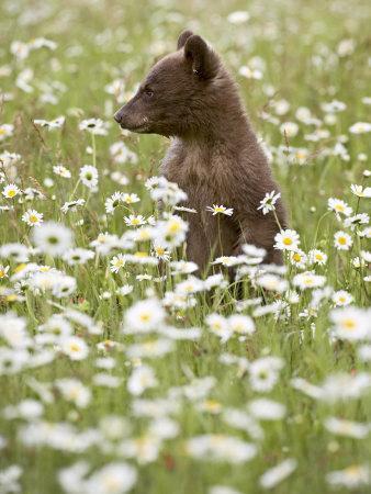 Black Bear Cub Among Oxeye Daisy, in Captivity, Sandstone, Minnesota, USA