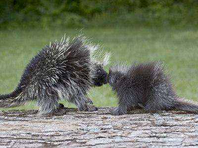 Porcupine Mother and Baby, in Captivity, Sandstone, Minnesota, USA