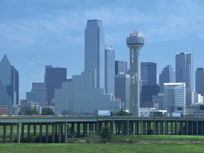 Bridge over the Dallas River Floodplain, and Skyline of the Downtown Area, Dallas, Texas, USA