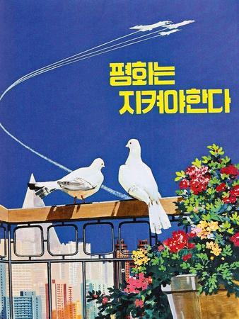 Korea: North Korean (DPRK) propaganda poster - Peace has to be defended, set against the Pyongyang skyline, c. 1950s-1960s. Socialist Realism is a style of realistic art which developed under Socialism in the Soviet Union and became a dominant style in other communist countries. Socialist Realism is a teleologically-oriented style having as its purpose the furtherance of the goals of socialism and communism. Although related, it should not be confused with Social Realism, a type of art that realistically depicts subjects of social concern
