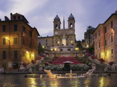 Spanish Steps Illuminated in the Evening, Rome, Lazio, Italy, Europe