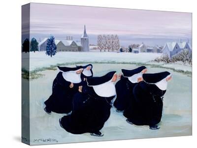 Bring warmth and charm to your space with “Winter at the Convent”, a whimsical gouache artwork by Margaret Loxton. This delightful piece portrays a group of nuns joyfully skating across a frozen pond during a peaceful winter day. Their traditional black and white habits contrast playfully with the soft pastel tones of the snowy landscape, creating a sense of humor and serenity. Rendered in Loxton’s signature naïve folk-art style, the scene features simple shapes, expressive characters, and gentle brushwork. The background includes snow-covered cottages, bare winter trees, and a distant church, evoking the quiet charm of a rural village. Shades of soft blue, white, lavender, and muted green enhance the crisp seasonal feel of the composition. This poster is perfect for art lovers who enjoy narrative scenes with personality and warmth. Ideal for living rooms, studios, classrooms, or gift giving, it adds a cheerful touch to any wall while showcasing Loxton’s beloved storytelling style.