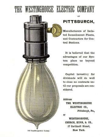 Bulb of the Westinghouse Electric Company: Incandescent Lamp worth the Power of 16 Candles. 1886 Ad