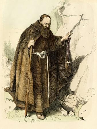 Middle Ages: Hermit Monk of the Middle Ages. Colour Engraving of the 19Th Century.
