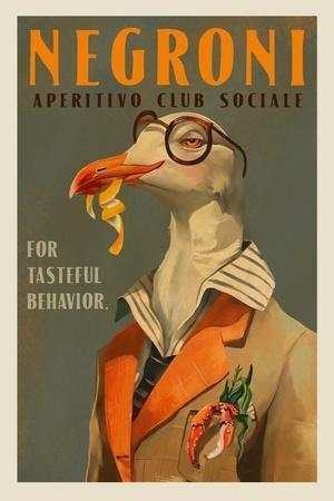 Vintage Art Deco Negroni Poster of A Fancy Seagull