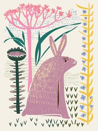 Block Print Lilac Bunny