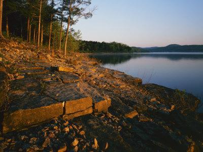 Sunrise along shore of Table Rock Lake, Mark Twain National Forest, Stone County, Missouri, USA